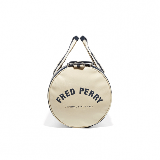 The classic Fred Perry Barrel Bag – designed in a durable PU. Featuring all its original details, with strong webbing handles and a zipped compartment at one end.