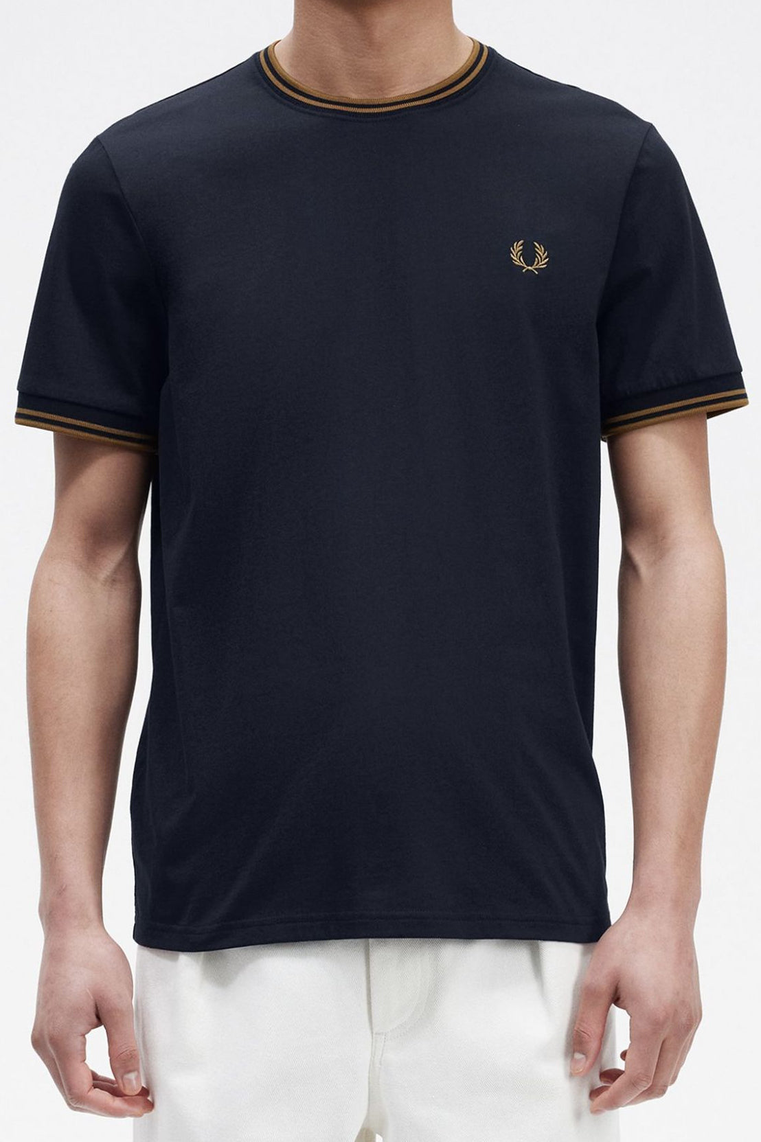 Fred Perry - M1588 Twin Tipped T-shirt in Navy / Dark Caramel