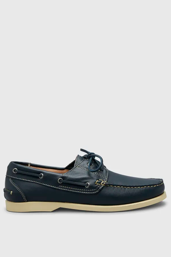Pretty Green - Leather Deck Shoes in Navy